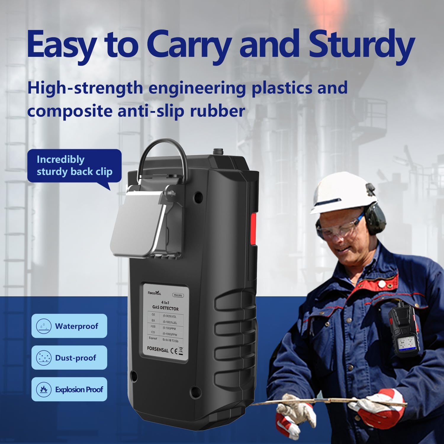 - 【Easy to Carry and Sturdy】Incredibly sturdy back clip to carry, the shell of gas detector is made of high-strength engineering plastics and composite anti-slip rubber, with high strength and good feel, and the 4 gas monitor is also waterproof, dust-proof and explosion-proof. Giving you total peace of mind wherever you're working