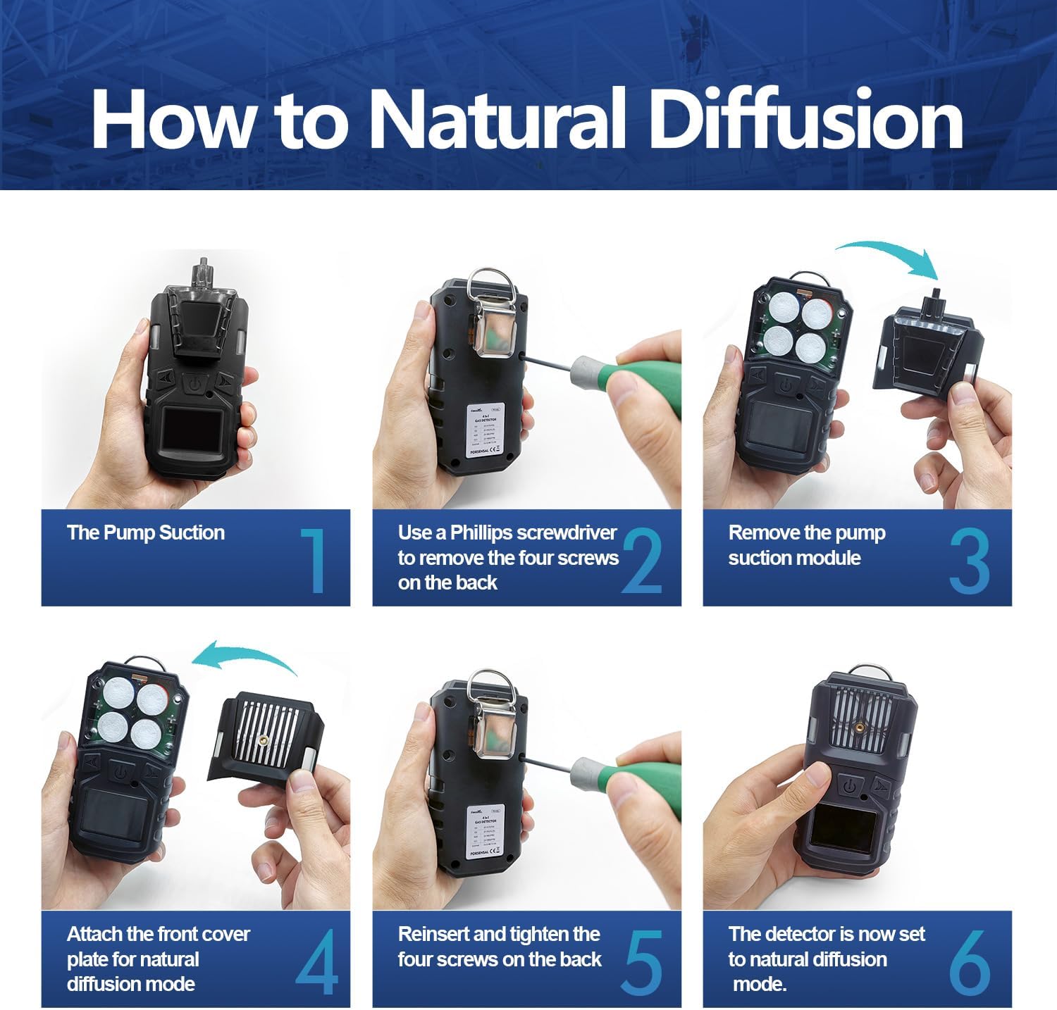 - 【Rechargeable and Long Lasting】3000mAh Lithium battery that standby time>8h, an exceptional battery life allows the device to continue to function normally even after lengthy hours of usage without compromising its functionality. The package includes the 4 Gas Monitor Multi Gas Detector, the Natural Diffusion Cap, the Calibration Cap, the Calibration Certificate, Hose, USB-C Cable and Charger, you can manually change the gas detector from pump suction to natural diffusion with only 4 screws
