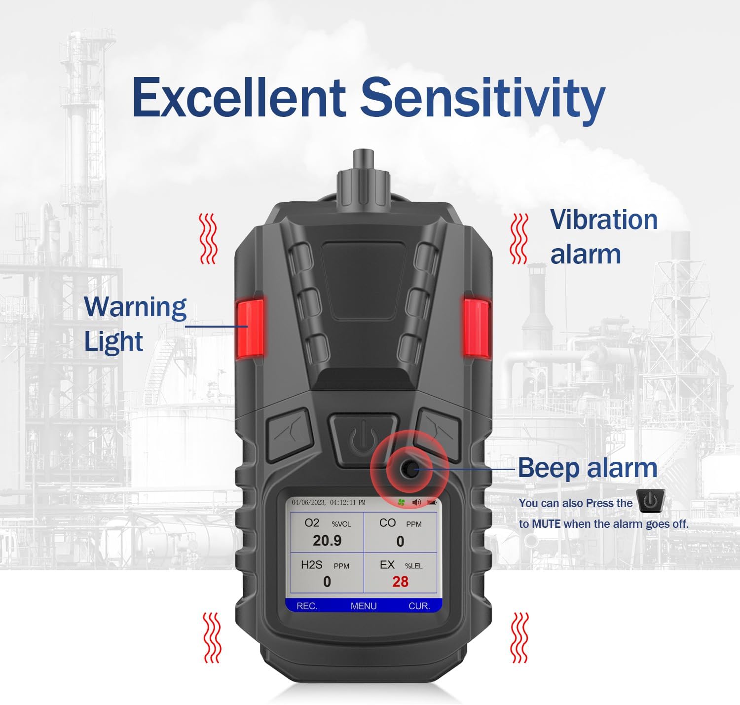- 【Excellent Sensitivity】The Gas Detector that response time< 30s, when the air quality isn't safe, it would warn the user through audible, visual and vibration alarms, you can also choose to turn off the sound when the alarm goes off. Portable multi-gas monitor are vital in protecting you from the hazards of toxic and combustible gases in confined spaces and dangerous work environments