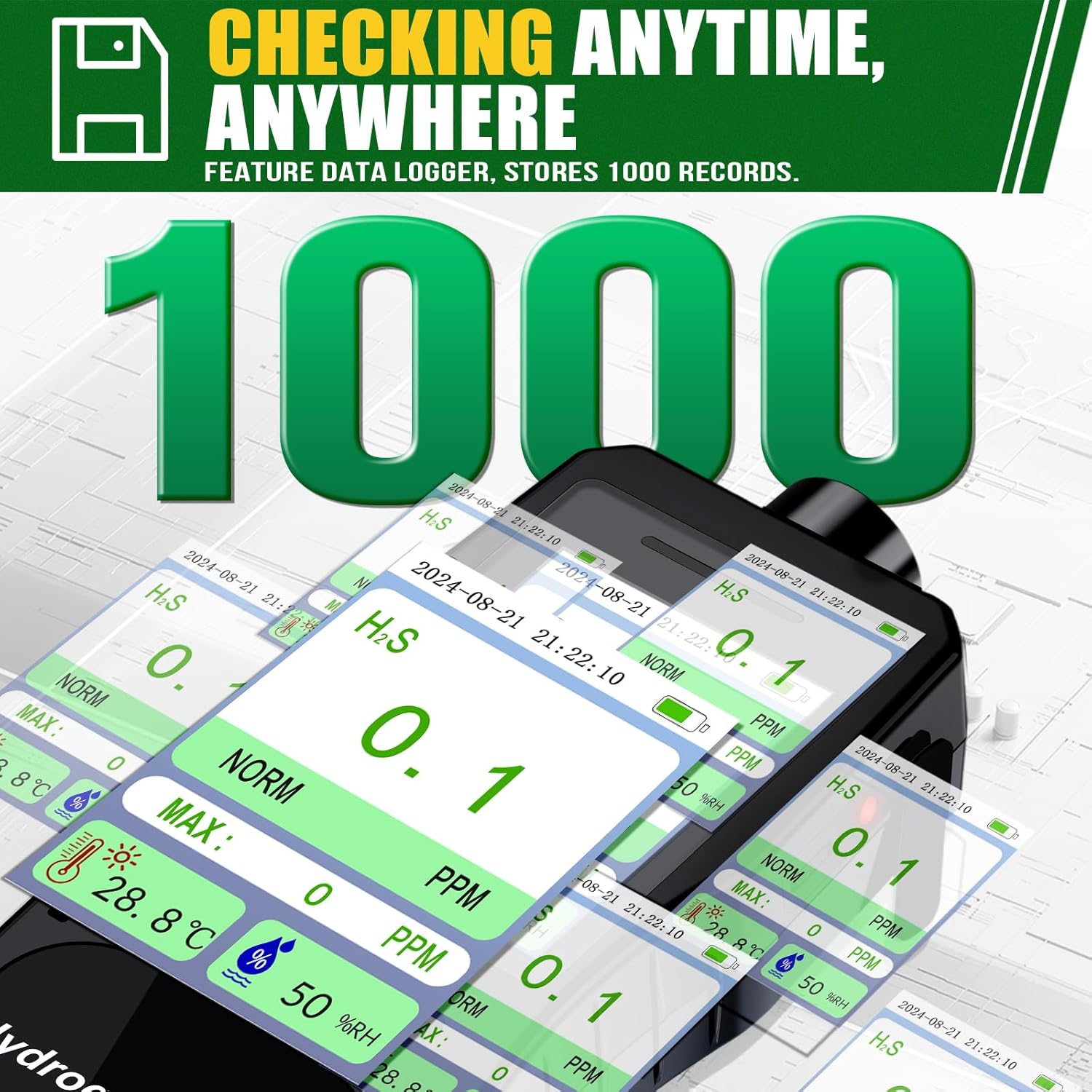 - Three Alarm Protection: Our Hydrogen Sulfide Detector stay alert with 3 alarm modes – LED flash lights, vibrations, and audible alerts. The adjustable alarm range ensures customized safety, while the data logging function stores up to 1000 records for easy tracking and analysis