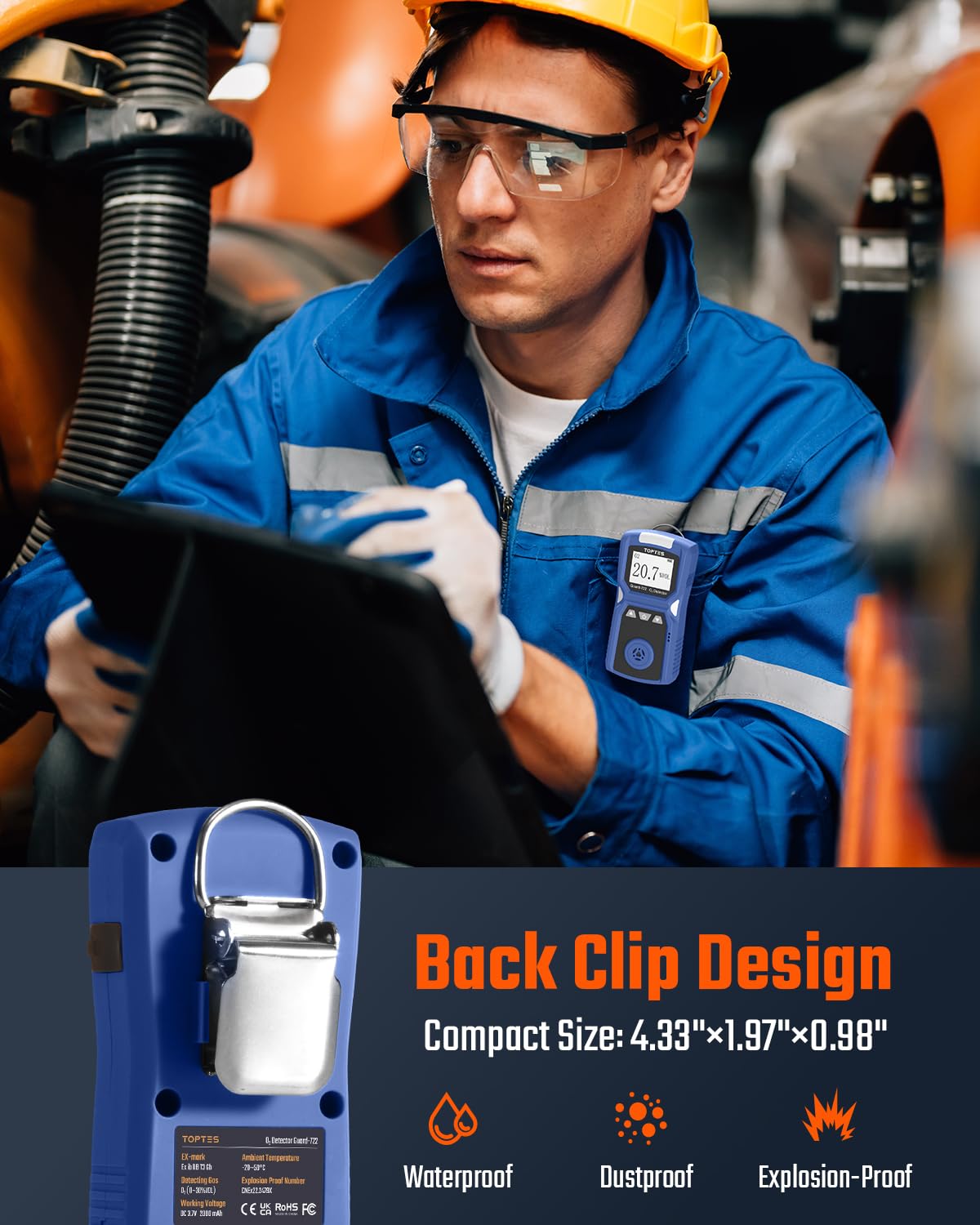 Portable Design, Safe and Explosion-Proof: Made from high-strength ABS engineering plastic, the oxygen meter is waterproof, dustproof, and explosion-proof, suitable for various work environments. Its compact size and back clip make it easy to carry